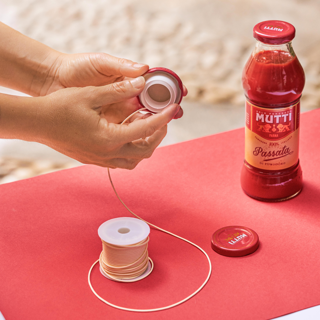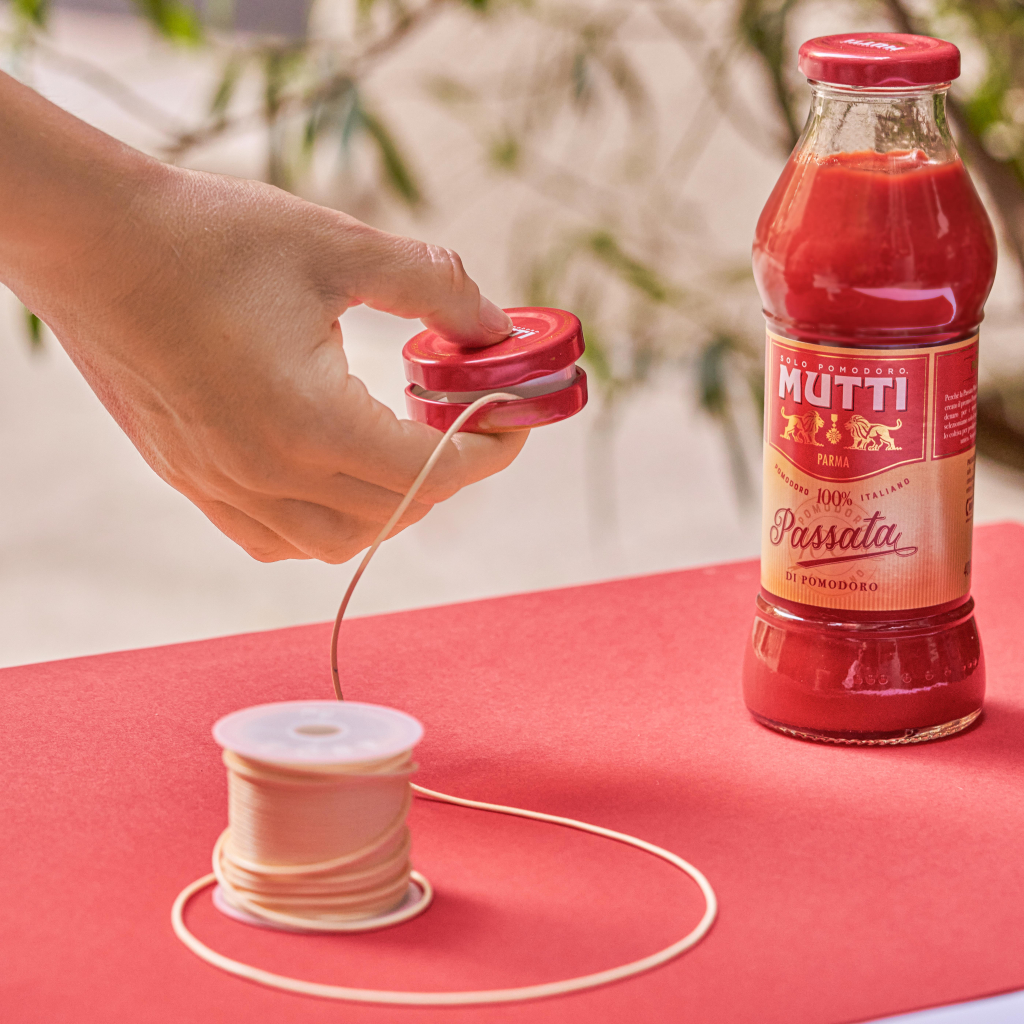 En regardant les bouteilles vides de purée de tomates Mutti, nous nous sommes demandé comment combiner créativité et durabilité, en donnant une seconde vie à nos emballages. Le résultat est un magnifique yo-yo fabriqué avec des couvercles de purée de tomates Mutti, la façon la plus simple de fabriquer cet amusant jouet classique. Essayez de construire votre propre Yo-Yo à la maison et taguez un ami que vous aimeriez défier !