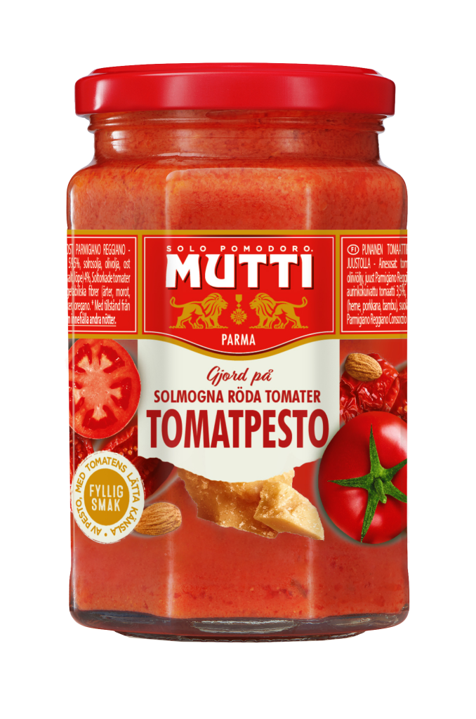 Dette opnås ved at man tilsætter solmodne røde tomater i pestoen. Nyd Muttis tomatpesto til pasta og ris, eller til og med som en lækker topping på brød.