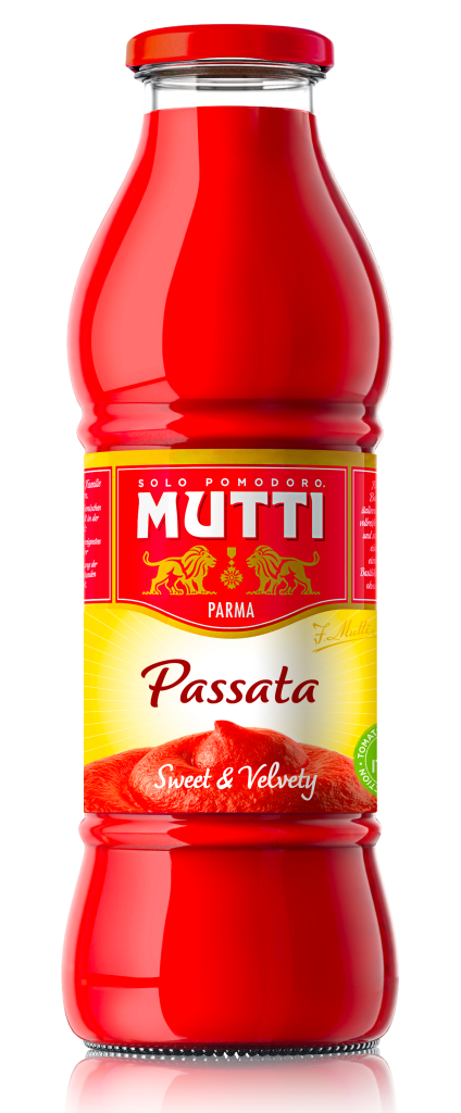 Passata is perhaps the easiest way to cook with Mutti products, as it only requires heating or can be eaten cold. It is ideally suited to short cooking times and gives great flavor for pasta sauces, eggs, and white meat. Passata withstands heat well, so it’s perfect for a red sauce, pasta sauces and on bread.