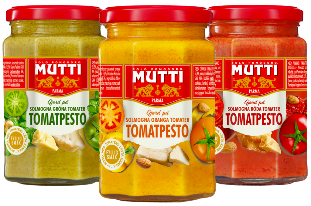 Sama täyteläinen peston maku entistä kevyempänä kiitos auringon kypsyttämien tomaattien! Muttin tomaattipestot valmistetaan 100 % aidoista italian auringossa kypsyneistä eri värisistä tomaattilajikkeista. Saatavilla kolmena laatuna: oranssina, vihreänä ja punaisena. Tuo luovuutta keittiöösi täyteläisillä pestoillamme!