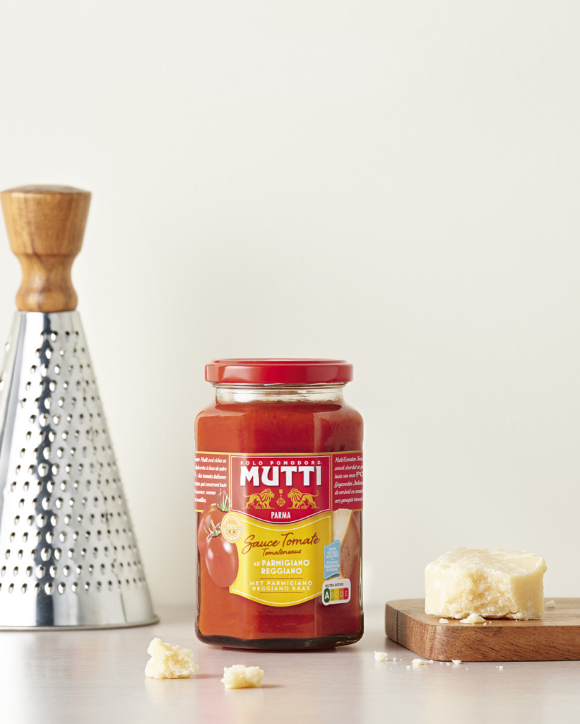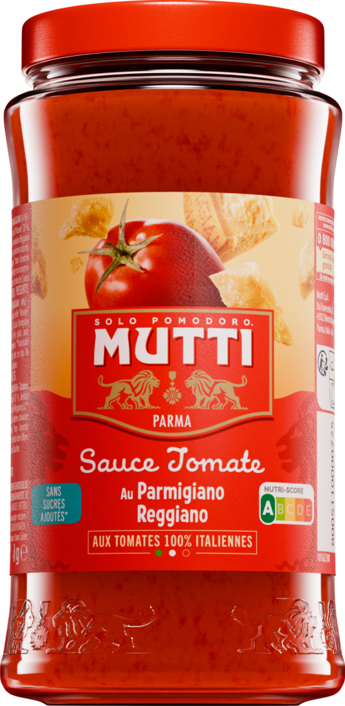 La sauce tomate au Parmigiano Reggiano Mutti est réalisée à partir d’ingrédients italiens premium : le Parmesan « Parmigiano Reggiano » AOP (Appellation d’Origine Protégée) affiné durant 12 mois minimum, et notre Polpa Mutti, élaborée avec des tomates cultivées, mûries et transformées sous le soleil de nos champs en Italie.