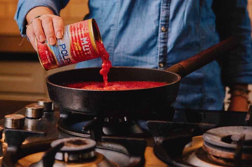 Mutti Polpa – Hakkede tomater inneholder mer vann enn passata eller tomatpuré. Den kan derfor også brukes i oppskrifter som krever lang koketid eller høye temperaturer.