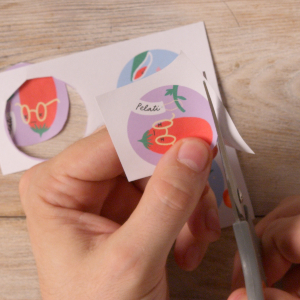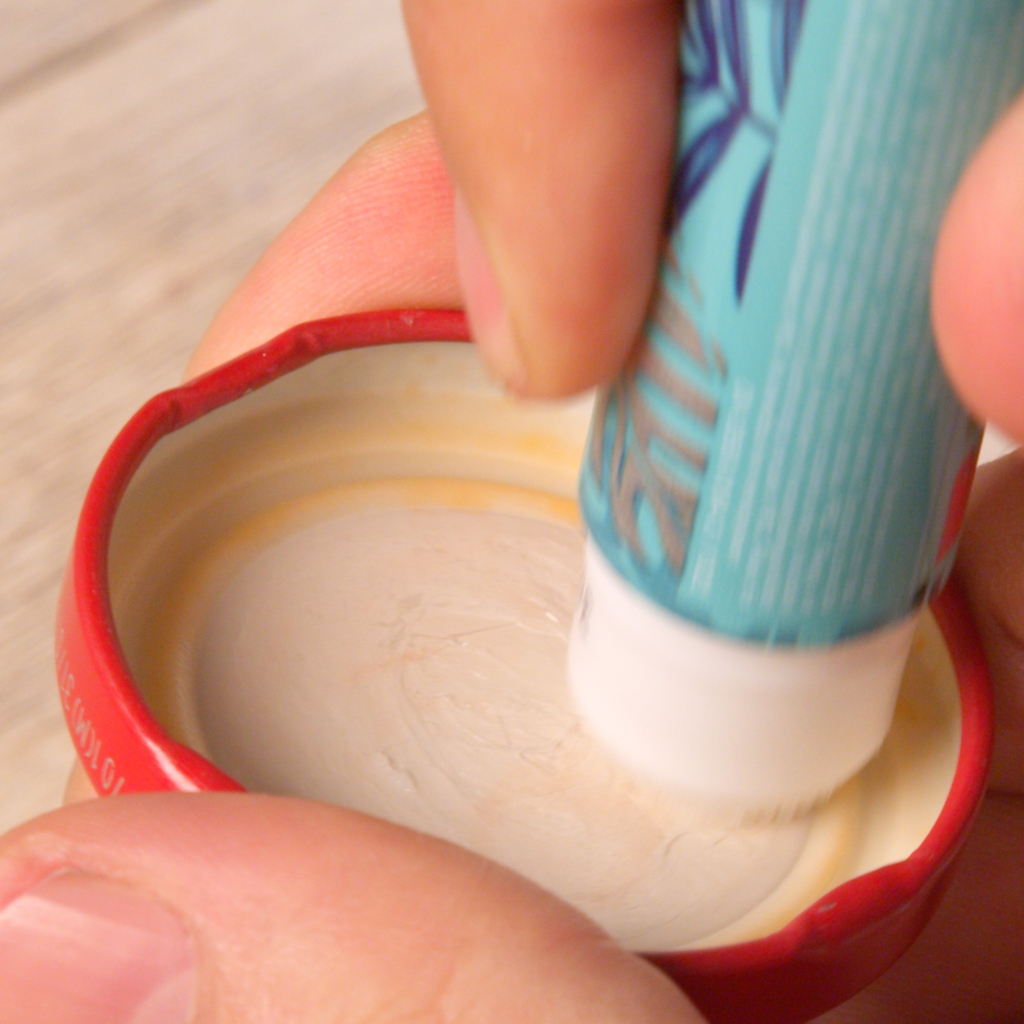 Lim fast illustrasjonene på innsiden av kapslene med en limstift.