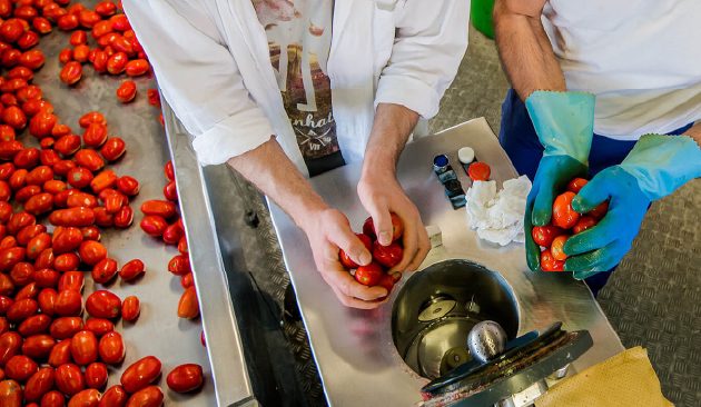 De mängder tomater som tas in i våra anläggningar nästan utan uppehåll under skördetiden och deras kvalitet är det som avgör hur vårt kommande år ska se ut. Allt måste stämma och alla tomater måste bearbetas inom ett dygn för att de ska hålla sig fräscha och goda. Snabbhet och noggrann kvalitetskontroll går hand i hand!