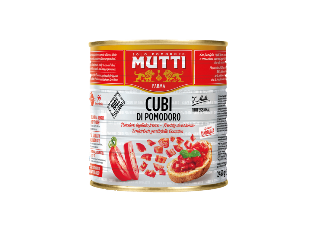 Muttis tärnade tomater Cubi är högkvalitativa italienska tomater, som har skurits i bitar och lagts in i en konserverande vätska som bevarar tomaternas friskhet och färska smak. Med Cubi kan restauranger erbjuda smaken av färska tomater under hela året. Tack vare dessa egenskaper passar Cubi perfekt till bruschetta och goda aptitretare, eller för att tillföra färg och fräschör till varmrätter. Cubi är en professionell produkt avsedd för cateringverksamhet, restauranger och pizzerior.