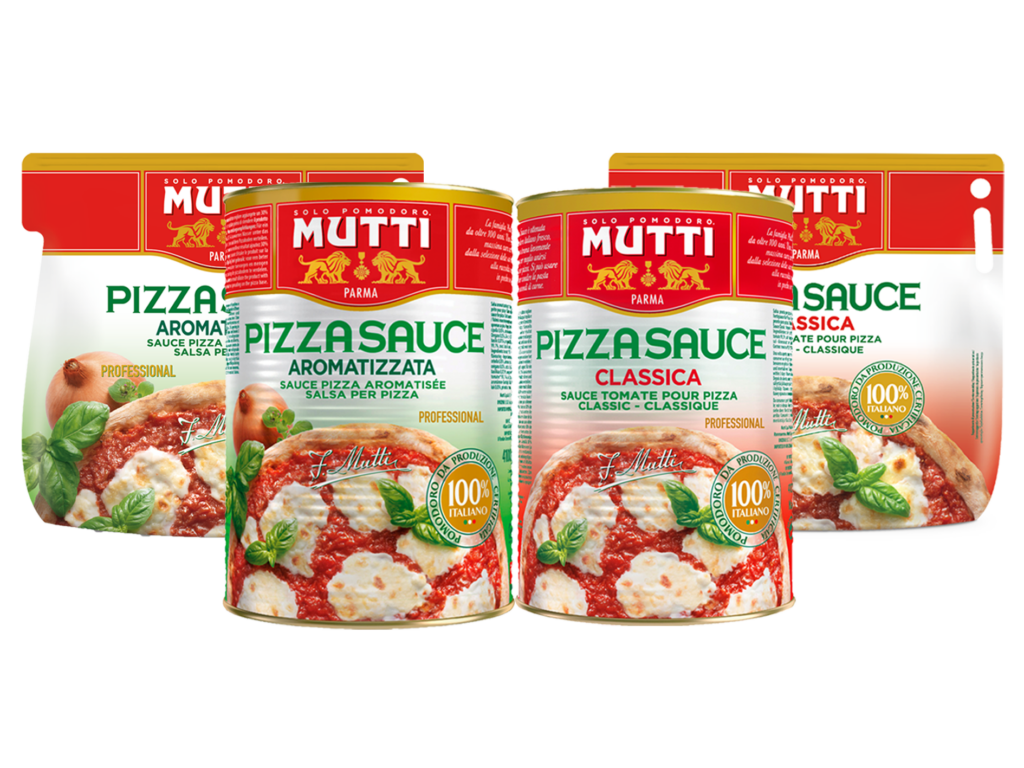 Muttis pizzasås har en tjock, rustik konsistens och finns i två smaker: aromatisk och klassisk. Den är lätt att dosera och breda ut och ger pizzan ett fint utseende även efter gräddning i elektrisk ugn. Den passar särskilt bra vid lägre temperaturer, vilket bevarar den rika, mustiga smaken.