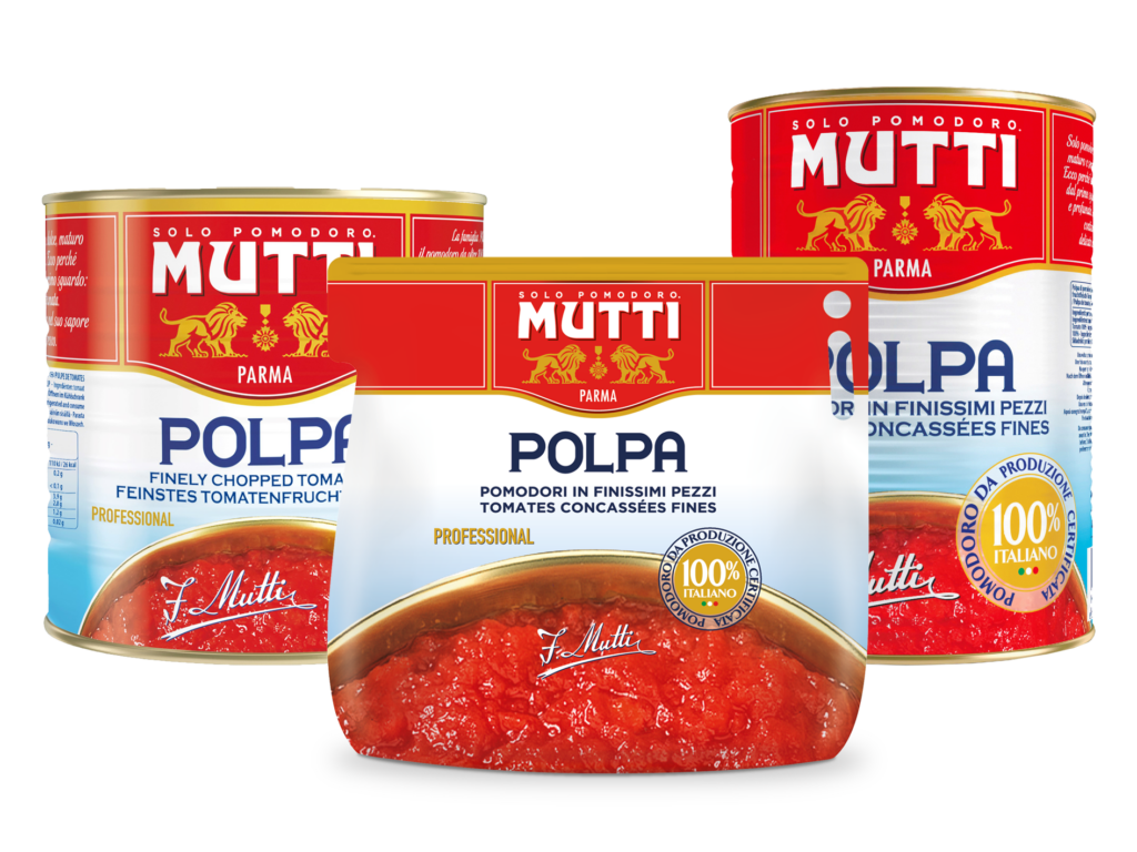 Muttis finhackade krossade tomater har en ljusröd färg, frisk smak och fyllig konsistens. Den är särskilt framtagen för att möta behoven hos pizzerior och restauranger som vill bjuda sina gäster på rätter med smak av solmogna tomater.